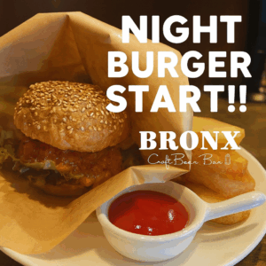 ランチで大人気のBRONXバーガーが、ついに夜でもお楽しみいただけます。