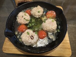 ジューシーなつくねとトマトの酸味が絶妙で、ビールがグイグイ進む一品です🍻